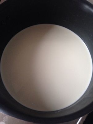 首先,将牛奶倒入小盆中。
