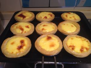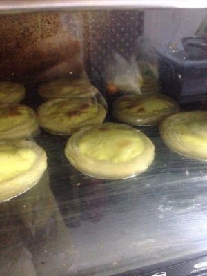 放入烤箱上下火200度烤25分钟,各家烤箱不同,注意蛋挞上色情况