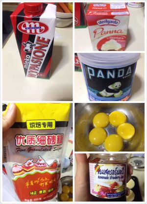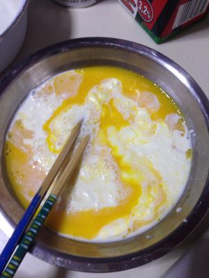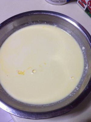 顺序其实打乱也没事:牛奶-白砂糖(拌匀)-炼乳-蛋奶油-蛋黄,拌匀备用。