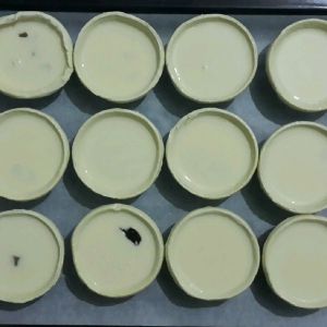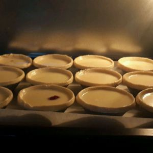 将蛋挞水倒入蛋挞皮中7分满,220度,25分钟左右。