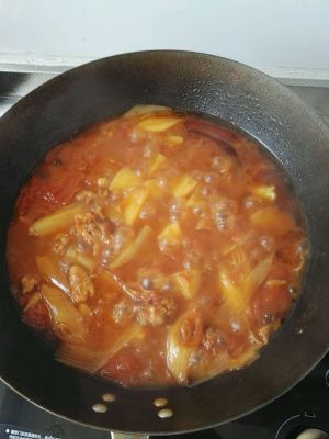 第二,锅中放入食用油,油温八十度以下,将鸡腿肉放入锅中煎。可放入适量花椒,小辣椒,老抽。鸡肉煎至金黄后捞出。然后锅中再放食用油,将土豆和西红柿一起下锅翻炒。后到入煎过的鸡肉,再到水淹过锅中食材,小火炖40分钟。