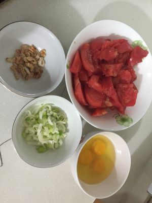 西红柿切块,葱切葱花,鸡蛋打散备用