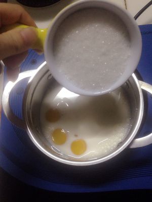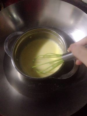 隔水加热到白糖融化,蛋奶液有点浓稠就可离火