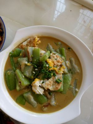 洗锅,放油7成熟倒入丝瓜翻炒,丝瓜稍稍变色,倒入鸡蛋,翻炒1分钟加水,盖锅盖闷5分钟,然后放入盐,再炒小会儿,装盘,散葱花即可装盘
