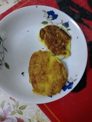 切好,一片一片的裹鸡蛋,然后放入不粘锅里小火慢慢煎。