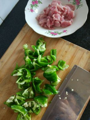 瘦肉切薄片 青椒可以切块 也可以随自己喜好来切