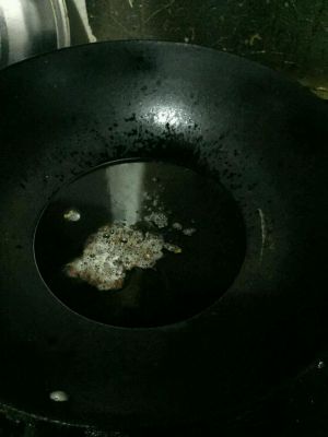 做锅放油,放花椒,炸出香味,捞出花椒。