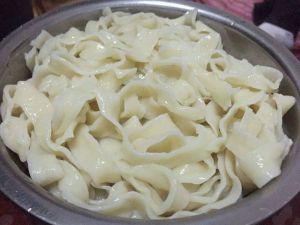 这就可以了,吃的时候先吃肉和菜,吃的差不多了把面倒进去用大盘鸡的汤拌面吃,好吃极了。