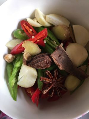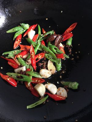 辣椒切段,大蒜,生姜,花椒,大料各一个