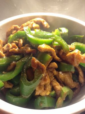 青椒炒肉丝二:肉丝,青椒,豆瓣酱各适量。肉丝洗干净,然后加一匙豆瓣酱,这是重点。然后加点酱油,淀粉,少些油,然后抓一下,腌制15分钟。肉用豆瓣酱腌制出来,味道比较香。青椒洗干净,切丝。锅中底油,油热加入姜丝爆香一下,倒入腌制好的肉丝,大火翻炒2到3分钟可以先盛起来。然后把锅洗一下,在加点油,油热倒入青椒煸炒1分钟。倒入待用的肉丝,加盐一起翻炒2分,然后加鸡精起锅。
