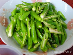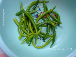 青椒去蒂洗干净;