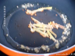 热锅倒油,放入姜丝、蒜末;爆炒;