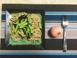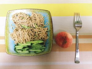 最后将菜码放在面条上,淋上酱汁,(也可以放炒熟的碎花生,我家没有了)可以开动了,是不是很有口感呢!