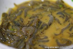 虾米洗净 放入一点面粉和鸡蛋 加盐拌匀 再放入葱姜碎