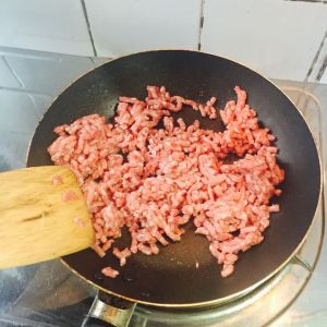 超市买的牛肉馅,不放油,当小煎锅里炒,一直炒至变色。