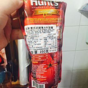 变色后倒入买好的意大利面番茄酱,大火煮开后转中小火,收下汁,汁的浓度根据个人喜好定。喜欢稠一点的多收一下,要多搅动,小心糊锅,我大概煮了十七分钟左右。我的稍微浓一点