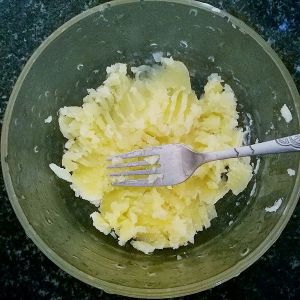 将蒸熟的土豆压成土豆泥