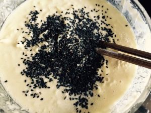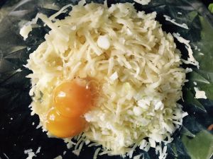 鸡蛋面粉土豆丝葱碎和水混在一起