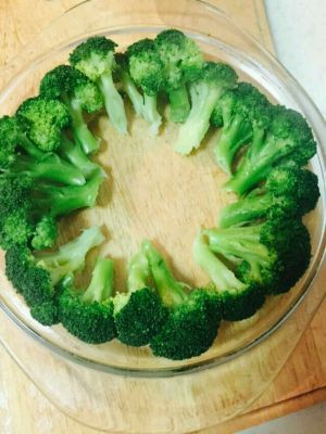白灼西兰花:武火将水烧开,放入一点盐和一勺油;油可以把菜里的营养发挥出来;盐可以使菜保持绿色。放入西兰花。水再次烧开一会将西兰花淋干摆盘。