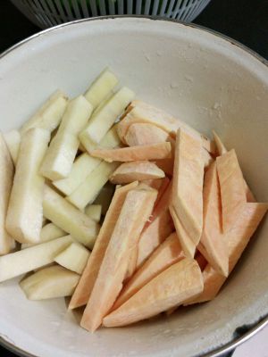 红薯和泡面要提前煮一下'8成熟就可以了'煮完放在旁边备用'等待开炒