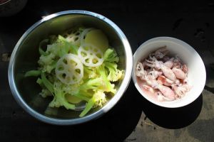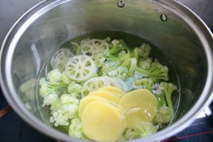 烧开水,藕片,土豆片,花菜焯水捞出来备用