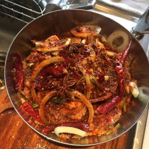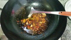2。国内加底油,比日常炒菜略多。将香料和底料炒香,葱姜爆锅。