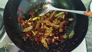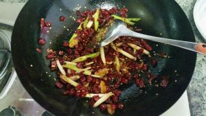 放入葱花 收汁即可 记住热油的时候先放花椒煸 这样才会出先麻后辣