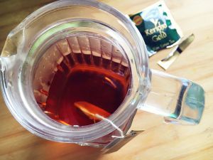 将红茶包放入茶杯中,冲入170ml沸水,并反复上下拉动茶包约20分钟,令红茶均匀融入水中,再取出茶包不用。