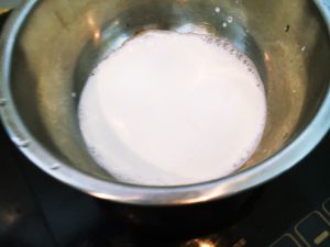 1、将红茶和糖放入拉花杯中加水在茶炉上烧开备用;