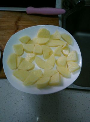 土豆上锅蒸20分钟,捣成泥(请忽略没捣好的那部分)加入玉米淀粉,放盐,五香粉,醋,料酒等调料