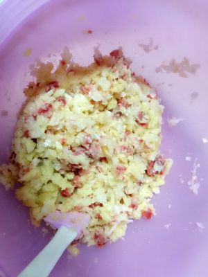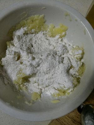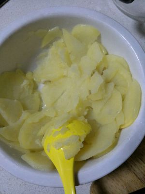土豆削皮切片上锅蒸熟,加少量盐压成泥