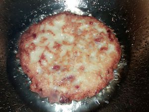 小火煎至两面金黄,面糊下锅后要尽量摊薄一些,这样比较容易熟