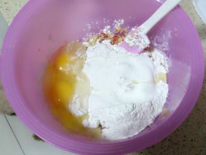 加入玉米淀粉揉成团醒10分钟,然后擀成片,用磨具压成圆圈⭕,可以用筷子插两个或者4个眼,做成纽扣的形状。也可以用磨具做成其他形状。(一定不要用手揉,刚出锅的很烫哦。可以拿铲子搅拌好,等醒好后再用手揉)