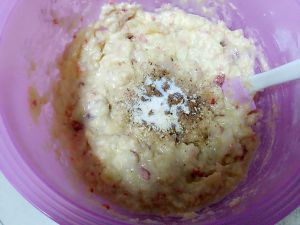 加黑胡椒盐,盐,鸡精,加适量凉水,和成糊状