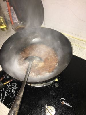 热锅冷油,先放入大料瓣,然后依次是葱姜蒜,出香味后放入黄酱,煸炒一分钟后加水。
