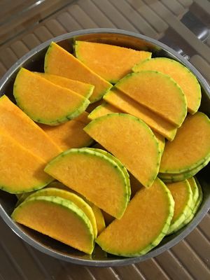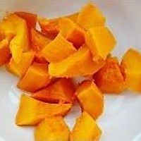 把南瓜削皮切丁。做饭时候放电饭煲里蒸蒸熟...要么另外方法蒸熟