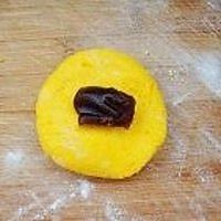 南瓜洗净去皮瓤切小块,上锅蒸至软烂后趁热捣成泥(我用的是小金瓜,感觉很甜了,就没加糖,如果是普通的南瓜可以适量加些糖)。