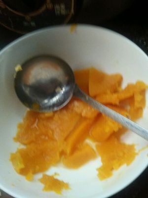 南瓜隔水蒸熟!这是我用剩下的!南瓜蒸熟后会出来很多水我都倒掉了因为光是南瓜本身的水分和面就足够!