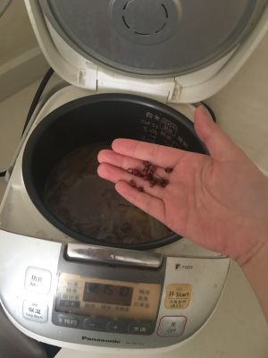 炒锅关火,将锅中所有食物及汤汁转移至电饭煲中,再加一汤碗热水,花椒少许。