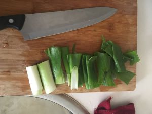 牛肉過水的時候準備大蒜,生薑和蔥,我覺得大蔥蔥白最好,不過這次家裡被我中午做火鍋料的時候用光了~只好用小蔥頂上