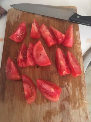 加适量油放入大料花椒番茄翻炒成番茄酱