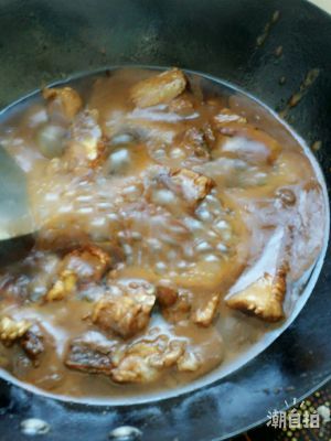 把小排放入锅中,加入酱汁,大火25分钟。