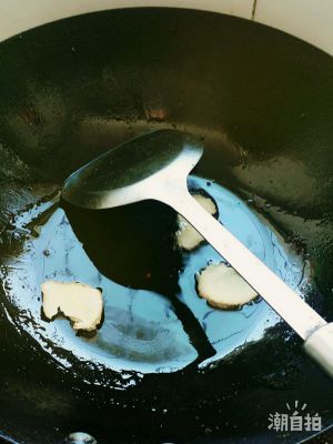 放少量花生油,再放入三片姜片
