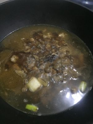 倒入土豆,辣椒酱继续煲,辣椒酱记得用桂林三宝的,好吃