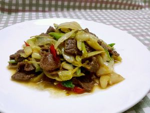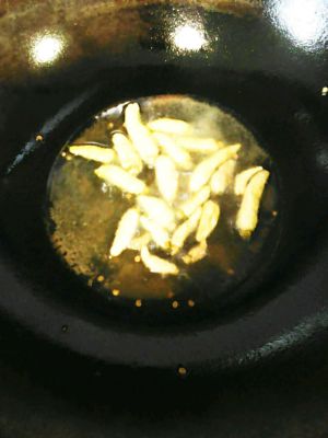 略微翻炒后再倒入过程3)的牛肉丝一起翻炒至匀,加鸡精调味即可