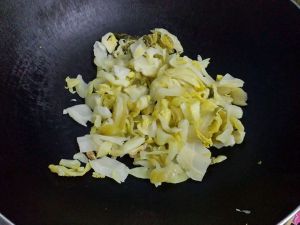 先把酸菜炒一下,炒出那种酸咸香。(我切的酸菜小了,大家炒的时候切长点)