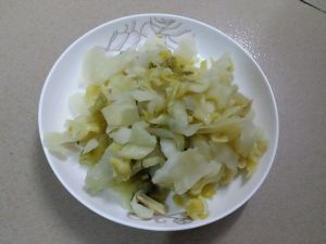 酸菜洗净切小片,并挤去水分(炒牛肉,选菜梗多的酸菜口感才好)