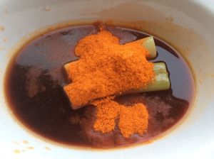 烤排骨的时候将腌制排骨的腌料再次加入适量的蜂蜜调好