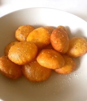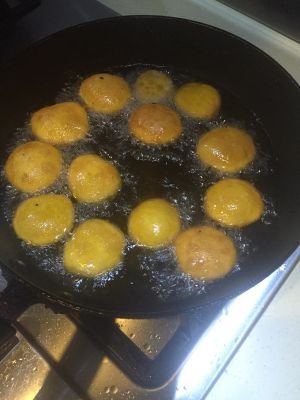 下油锅炸熟,油温不能太高,否则很容易会糊的