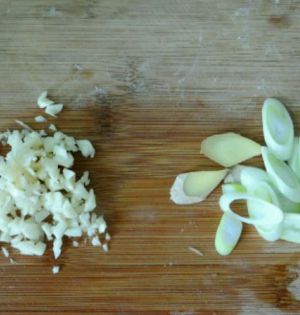 锅里留少许油,放入蒜末和姜末、炒出香味!